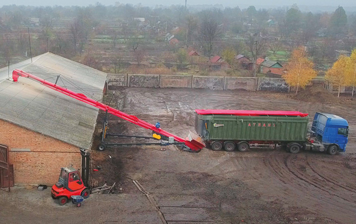 Агрегат имеет изменяющийся угол наклона и выгружает зерно на высоту 10-16 м (в зависимости от выбранной модели).